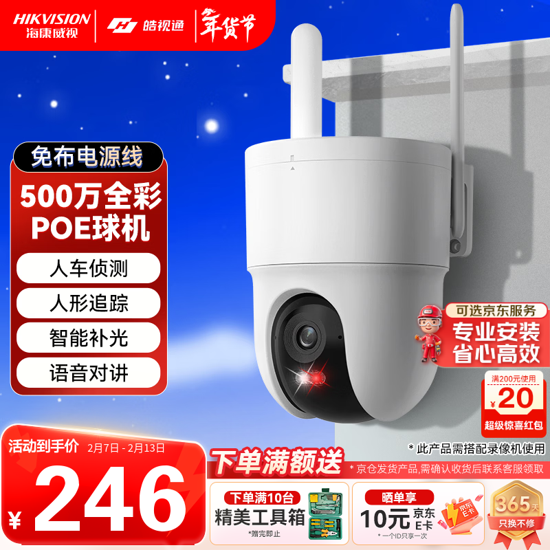 海康威视(HIKVISION)皓视通摄像头监控家用室外500万高清手机远程监控360无死角带夜视全景poe监控器人形追踪