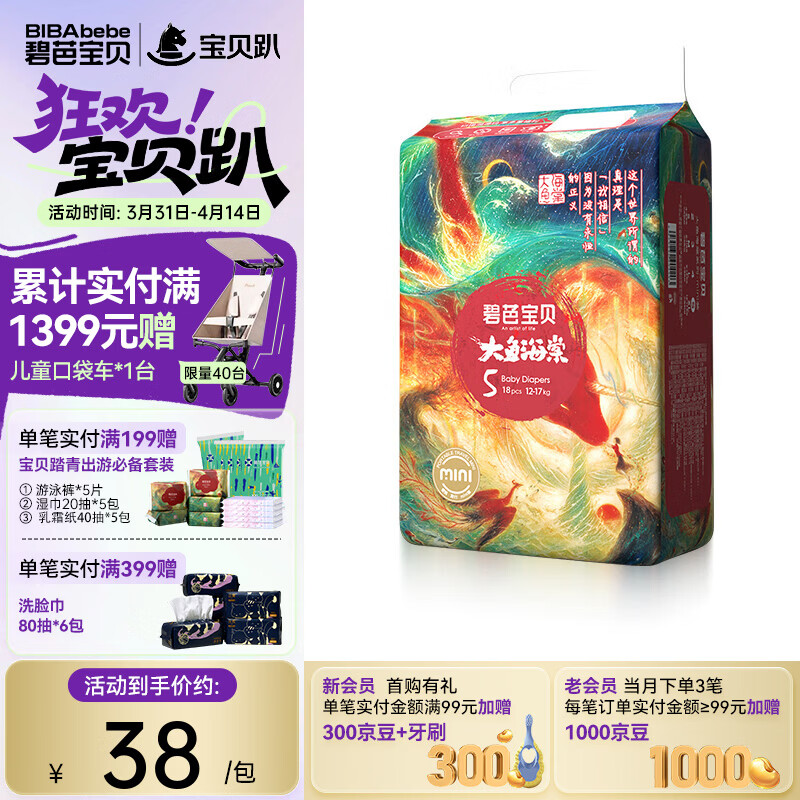 碧芭宝贝大鱼海棠纸尿裤夏季轻薄透气柔软婴儿尿不湿 mini装XL-18片(12-17kg)