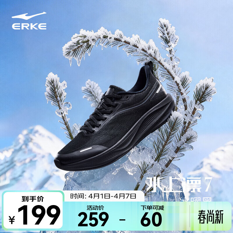 鸿星尔克水上漂7跑步鞋男鞋2026春夏季新款网面透气运动鞋减震超轻跑鞋子 【冰曜黑】正黑 -男 43