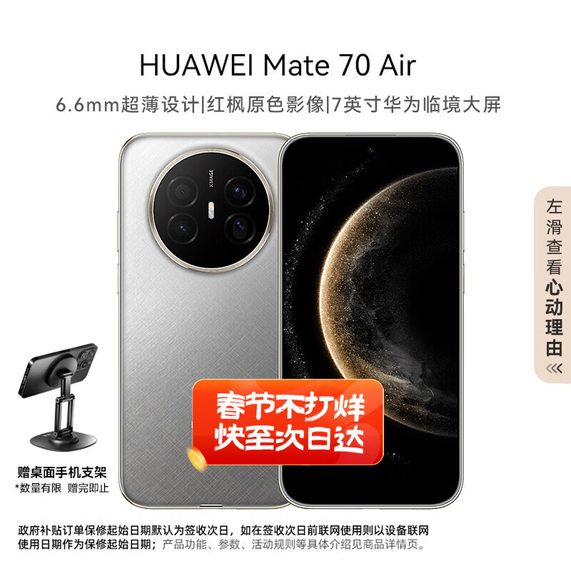 华为(HUAWEI)Mate 70 Air 12GB+512GB 金丝银锦 超薄长续航 7英寸华为临境大屏 红枫原色影像 鸿蒙手机