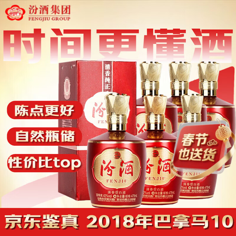 汾酒 巴拿马10 2018年 清香型白酒 42度 475ml*6瓶 整箱装 陈年老酒 【名酒鉴真】新年礼物