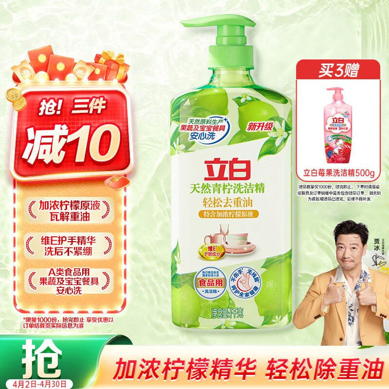立白天然青柠洗洁精1kg 果蔬净 A类食品用 维E护肤去重油不伤手洗涤灵