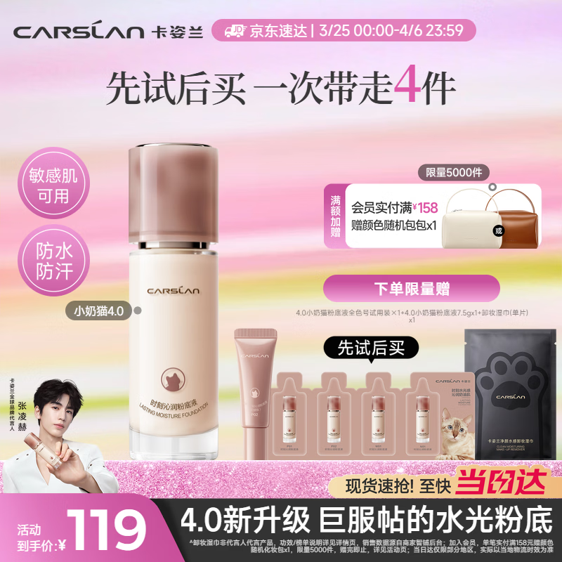 卡姿兰(Carslan)4.0升级小奶猫粉底液遮瑕水润持久不脱妆W01 30g 生日礼物送女生