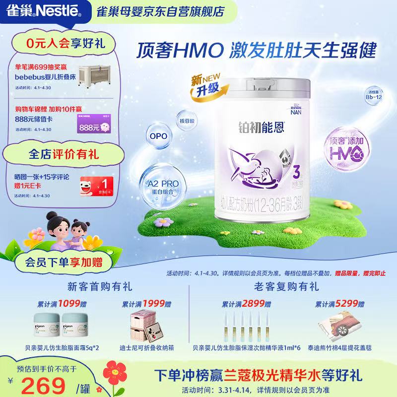 雀巢(Nestle)【新升级HMO】铂初能恩3段A2奶源 幼儿配方奶粉12-36个月适用760g