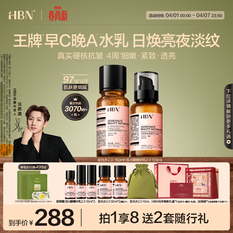 HBN【汪苏泷】早C晚A视黄醇水乳发光水提亮紧致淡纹护肤品套装礼物 【王牌水乳】发光水150ml+A醇乳