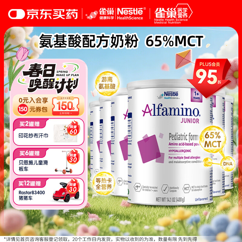 雀巢健康科学无敏氨基酸配方粉恩敏舒1+ 400g*6罐 1岁以上 正品保证