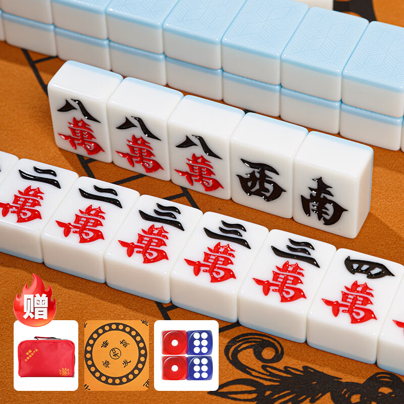 川喜麻将家用手搓麻将牌仿玉石便携式高颜值44-144天空蓝