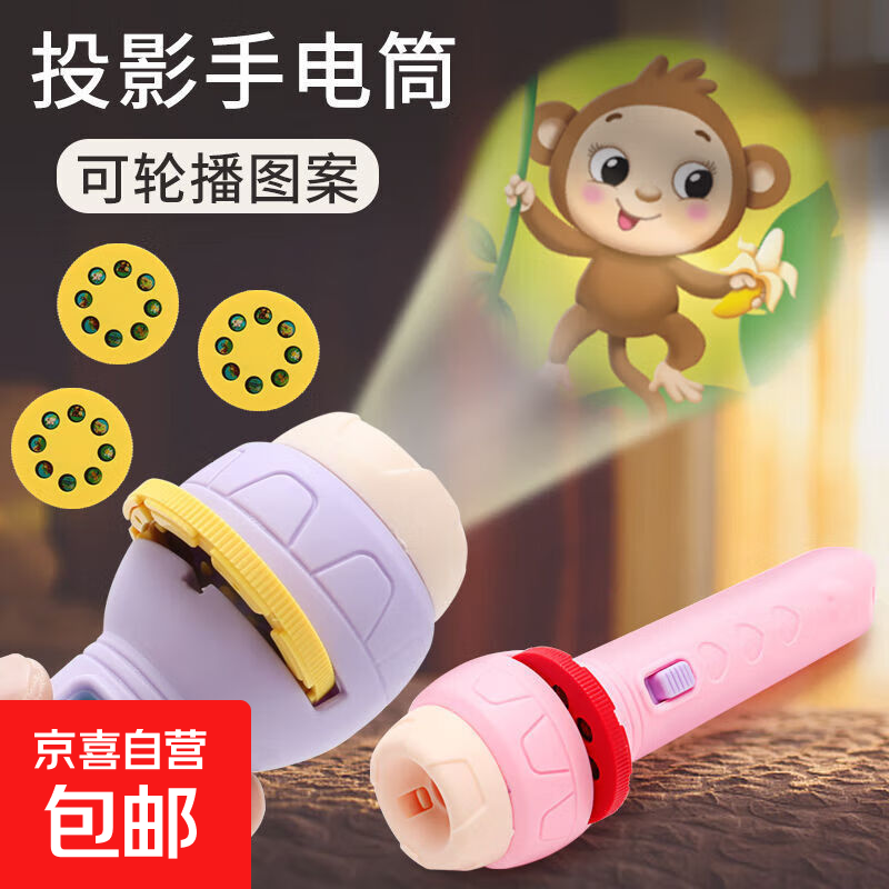 投影手电筒儿童益智早教发光玩具宝宝趣味幻灯片创意星空投影仪灯早教认知幻灯片玩具智力开发 紫色-手电筒+24个图案