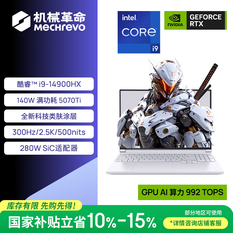 机械革命【国家补贴】极光X Pro 16英寸 酷睿i9HX 游戏本笔记本电脑(i9-14900HX 32G 1T RTX5070Ti 白)
