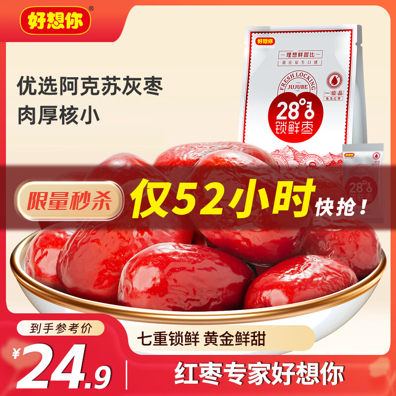 好想你 28°一级锁鲜枣500g/7袋 蜜饯果干红/灰枣新疆免洗即食可夹核桃