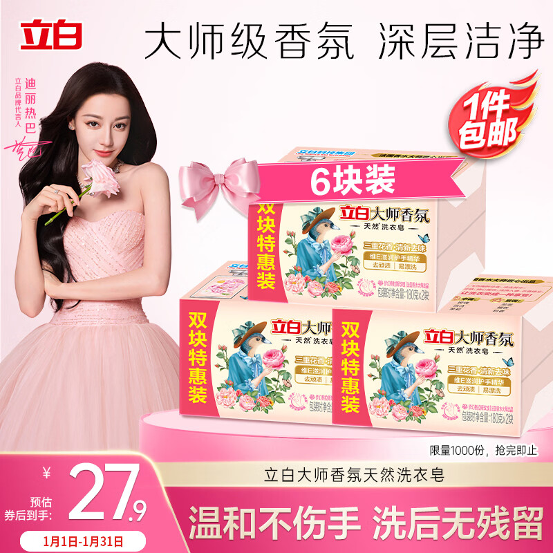 立白大师香氛天然洗衣皂180g*6块 内衣裤适用 祛味留香 温和护手 肥皂