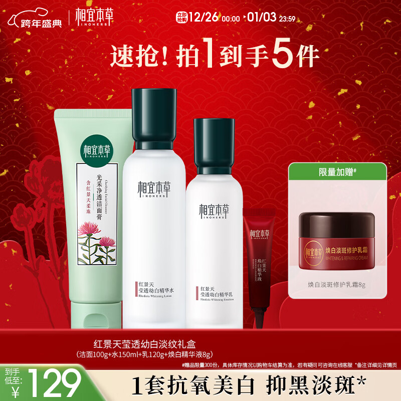 相宜本草红景天莹透幼白淡纹礼盒(保湿补水)圣诞礼物