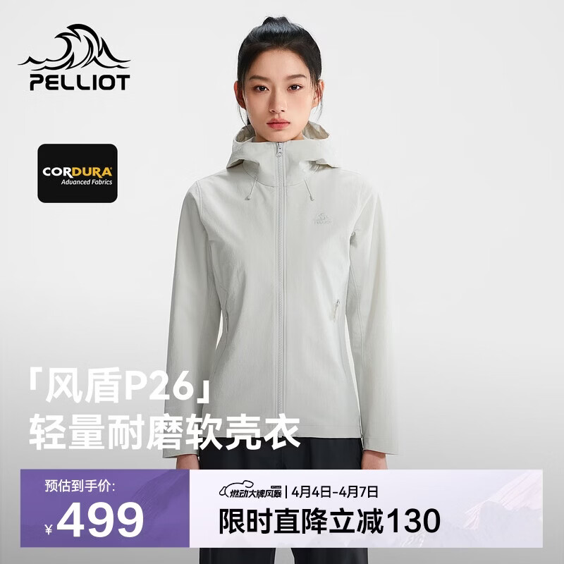 伯希和(Pelliot)【风盾P26】冲锋软壳衣女春夏CORDURA耐磨夹克外套126106037白L