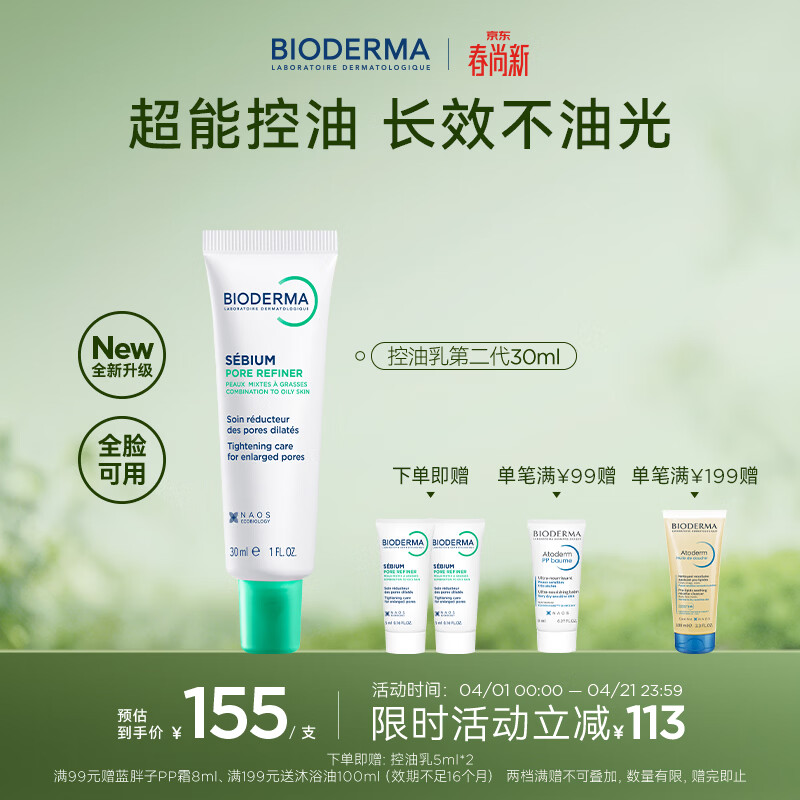贝德玛(BIODERMA)控油乳第二代全脸可用 油皮面霜 保湿抗氧 无需卸妆 30ml