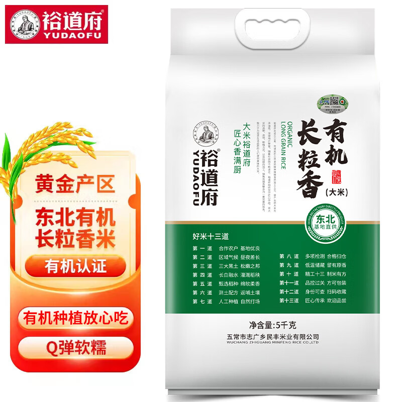 裕道府有机 长粒香 10斤装 当季新米 东北大米 粳米 5kg 有机 食品