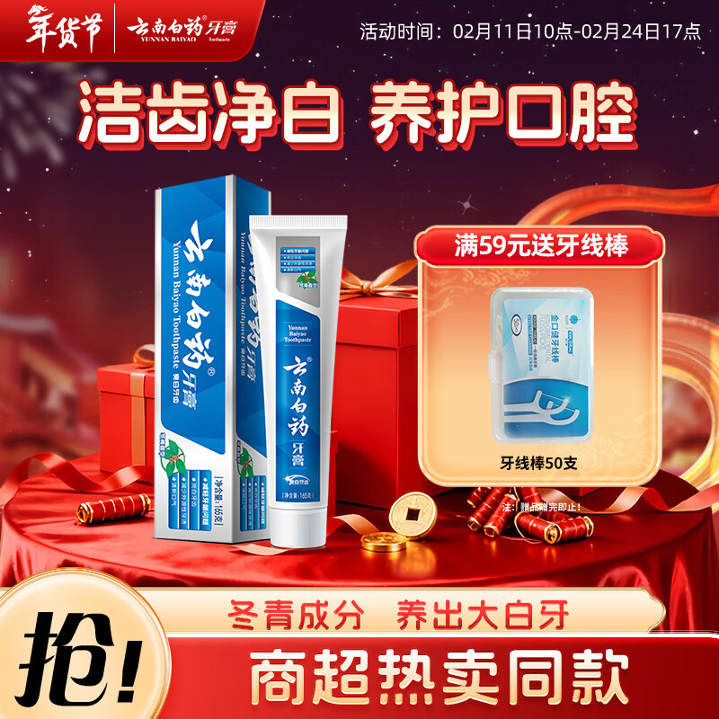 云南白药经典系列牙膏 护龈减轻牙龈问题 洁齿亮白清新口气冬青香型165g