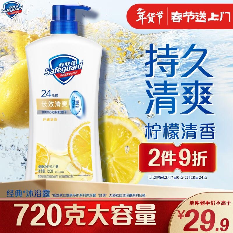 舒肤佳健康净护沐浴露 柠檬香720g 长效清爽 沐浴乳液 新旧包装随机