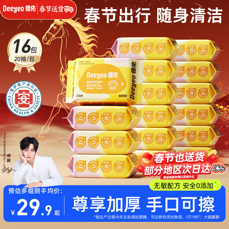 德佑婴儿湿巾20抽*16包 婴儿手口湿纸巾小包便携湿巾出行随身必备
