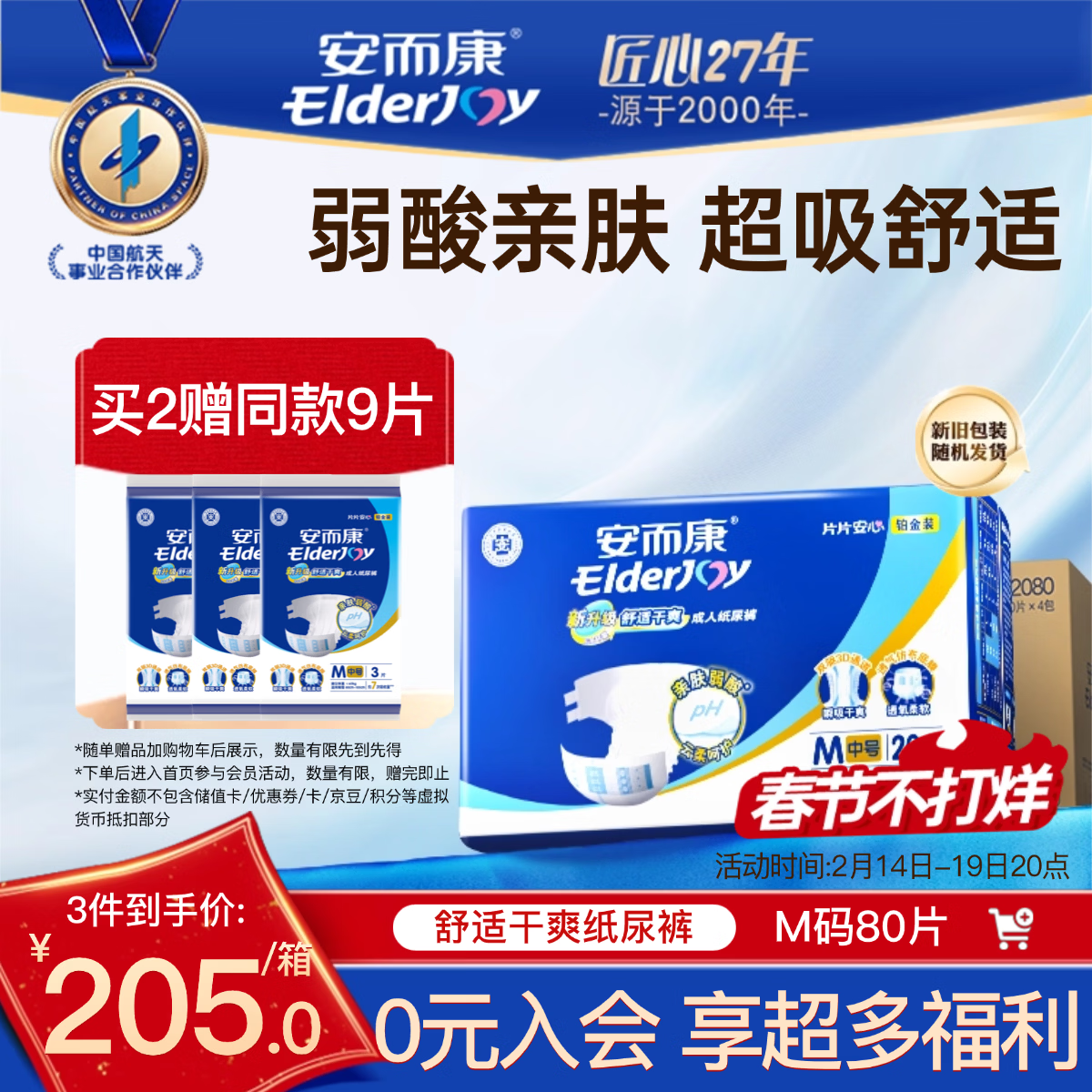 安而康(Elderjoy)舒适干爽成人纸尿裤M80片臀围80-105cm成人尿不湿老人亲肤