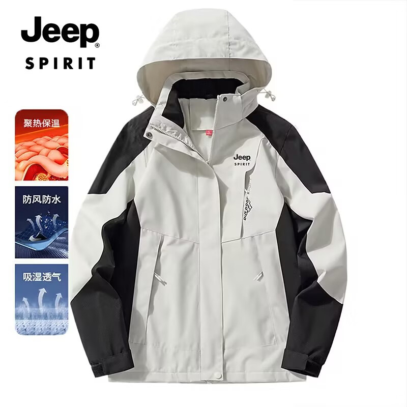 吉普(JEEP)冲锋夹克衣男女同款春秋季外套户外防风衣保暖冲锋外套