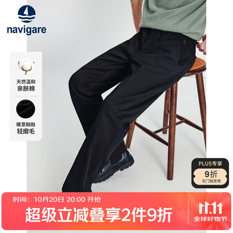 Navigare意大利小帆船25秋冬男微阔直筒休闲裤通勤长裤1342075505黑32