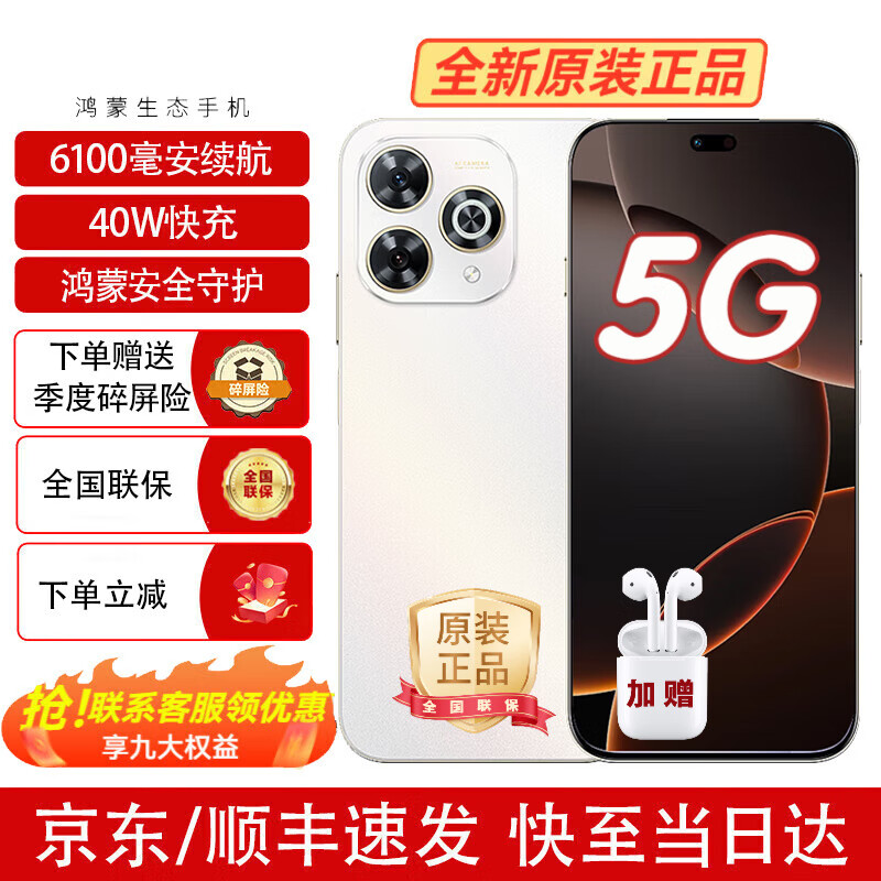 华为手机华为 新品5G手机智选80Pro 智能红外线 昆仑玻璃十倍耐摔 6100大电池快充防水 晨光白【12GB+512GB】 官方标配【赠蓝牙耳+碎屏险+延保服务】
