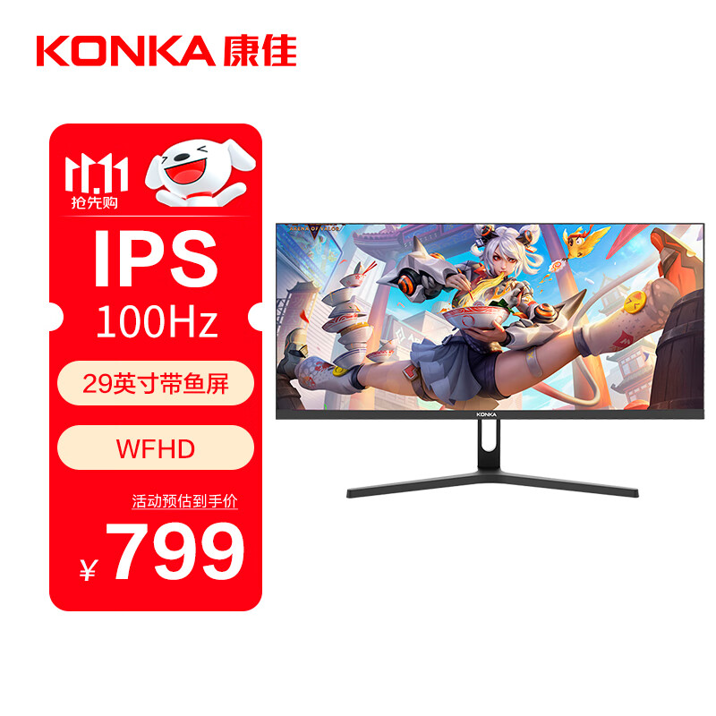 康佳(KONKA)29英寸 带鱼屏 准2K 100Hz高刷显示器 低蓝光 广视角 IPS 电竞游戏办公电脑显示屏 KM2960FI