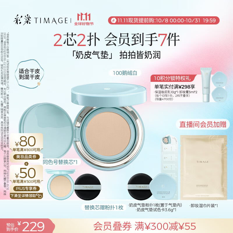 彩棠(TIMAGE)均衡光润奶皮气垫粉底液持久持妆100鹅绒白15g+替芯15g生日礼物