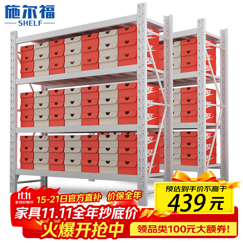 施尔福加厚240kg/层中型仓储货架仓库库房置物架家用储物架200*60*200cm