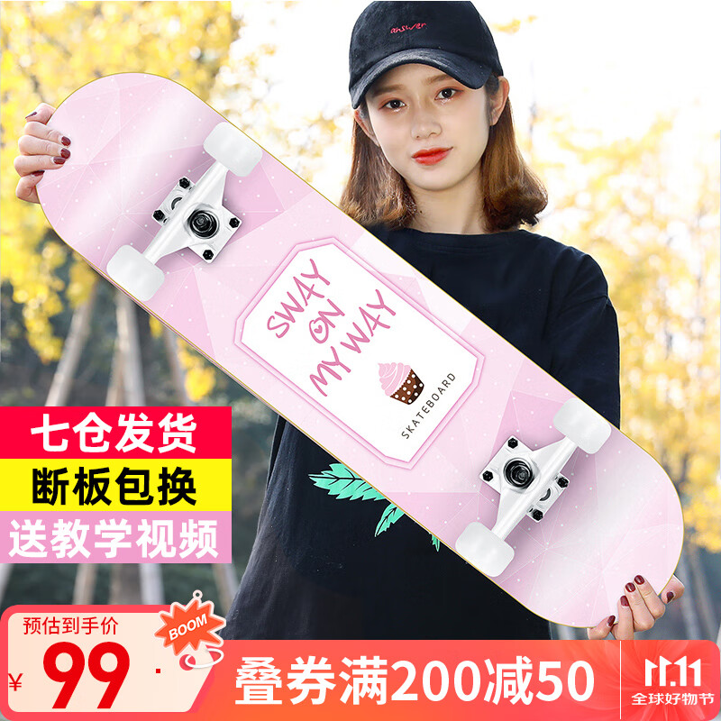 斯威(SWAY) 滑板四轮双翘板儿童滑板车成人专业男女青少年初学者刷街代步板 甜心CUP(专业动作款)