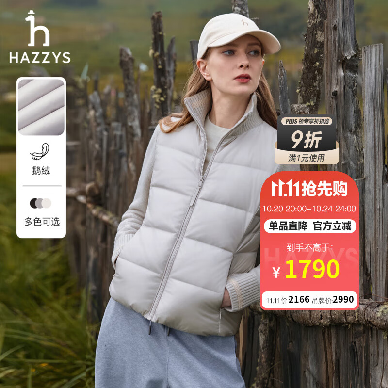 哈吉斯(HAZZYS)女装 秋季款女士【PHIZ系列】立领拼接轻薄羽绒服女 灰色GE M (160/84A 38)