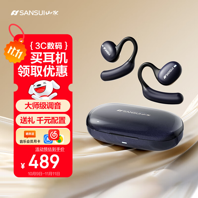 山水(SANSUI)TW35【超感音质丨柏林之声】蓝牙耳机挂耳式 骨传导概念不入耳开放式 运动降噪 适用华为苹果 深蓝