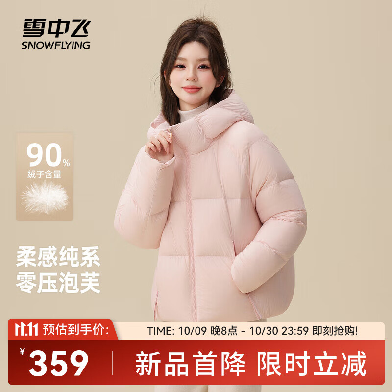 雪中飞2025冬新款云朵泡芙茧型短款羽绒服女冬小个子蓬松简约通勤 粉色|1234 M /165/88A