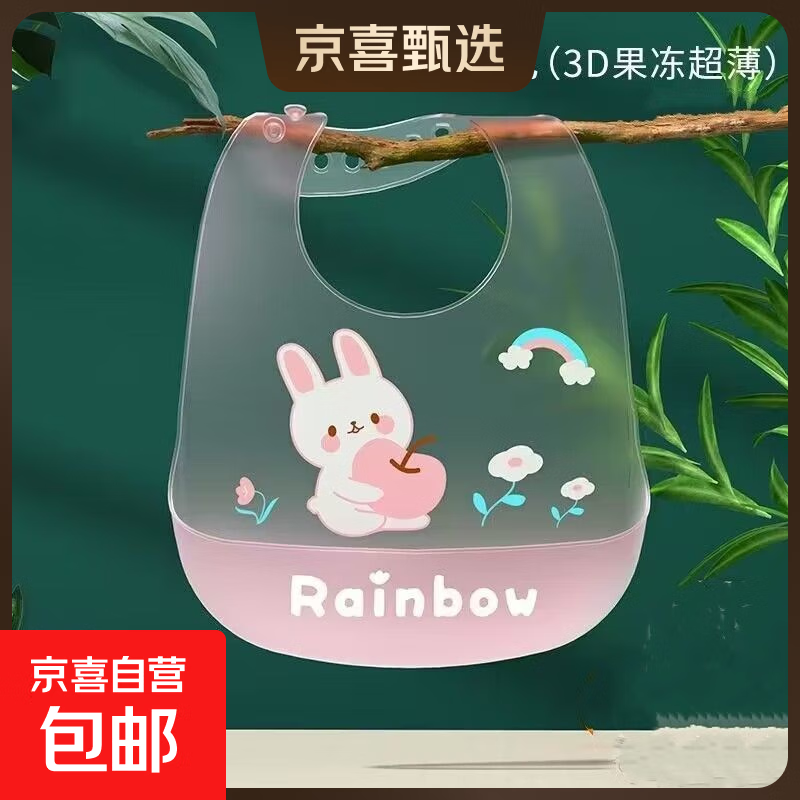 宝宝围兜儿童硅胶围嘴口水巾婴儿辅食饭兜3D薄款围兜宝宝防水罩衣 粉色-萌小兔 均码(建议3岁以下使用)