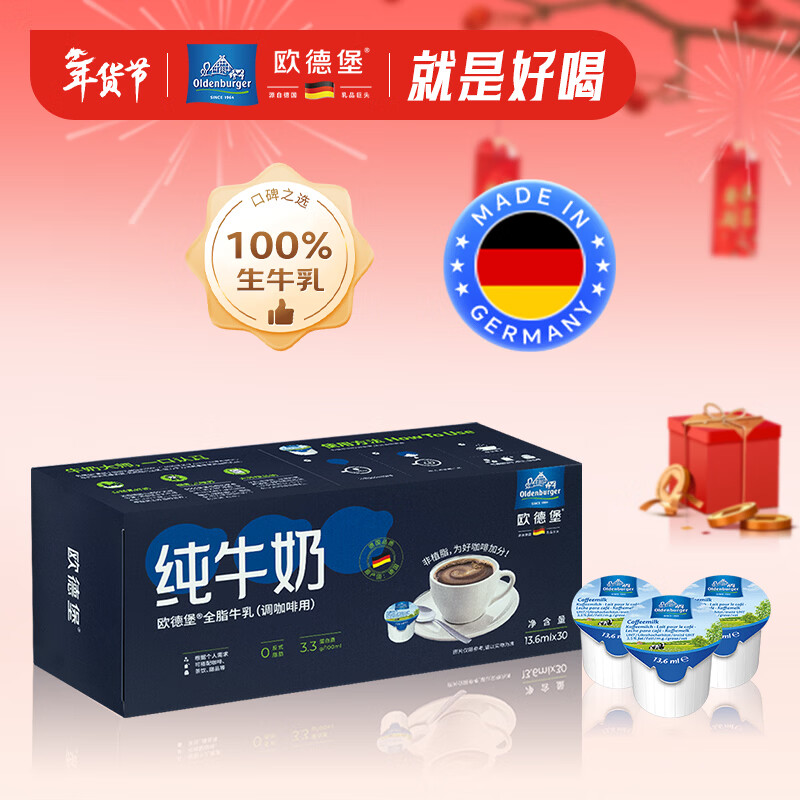 欧德堡(Oldenburger)德国进口 全脂牛奶奶球 咖啡伴侣 奶茶搭档 奶粒13.6ml*30