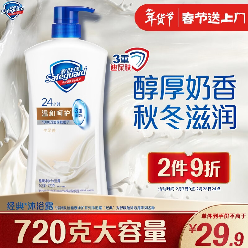 舒肤佳健康净护沐浴露牛奶醇香720g温和呵护秋冬适用沐浴乳液男女士通用