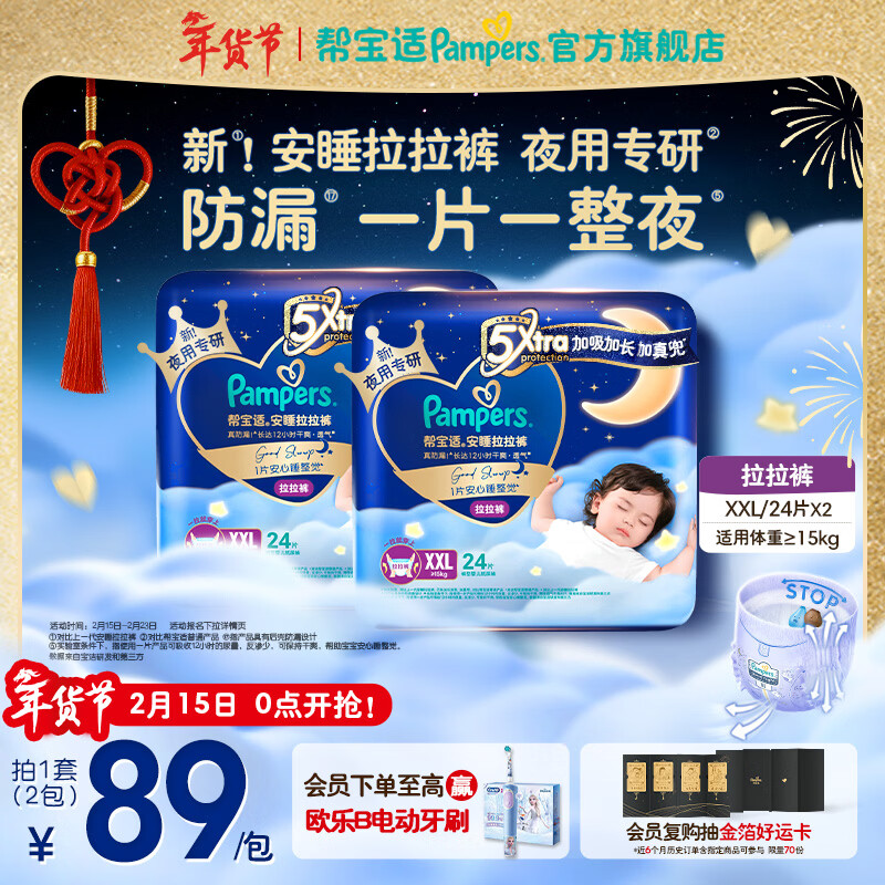 帮宝适【整觉王者】新安睡拉拉裤超薄透气 婴儿尿裤尿片尿不湿尿裤 安睡拉拉裤XXL48片(16-18kg) 常规款
