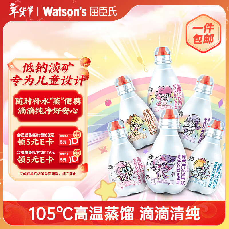 屈臣氏儿童水小马宝莉款蒸馏水纯净水200mL*12瓶整箱小瓶水 含盲卡 包邮