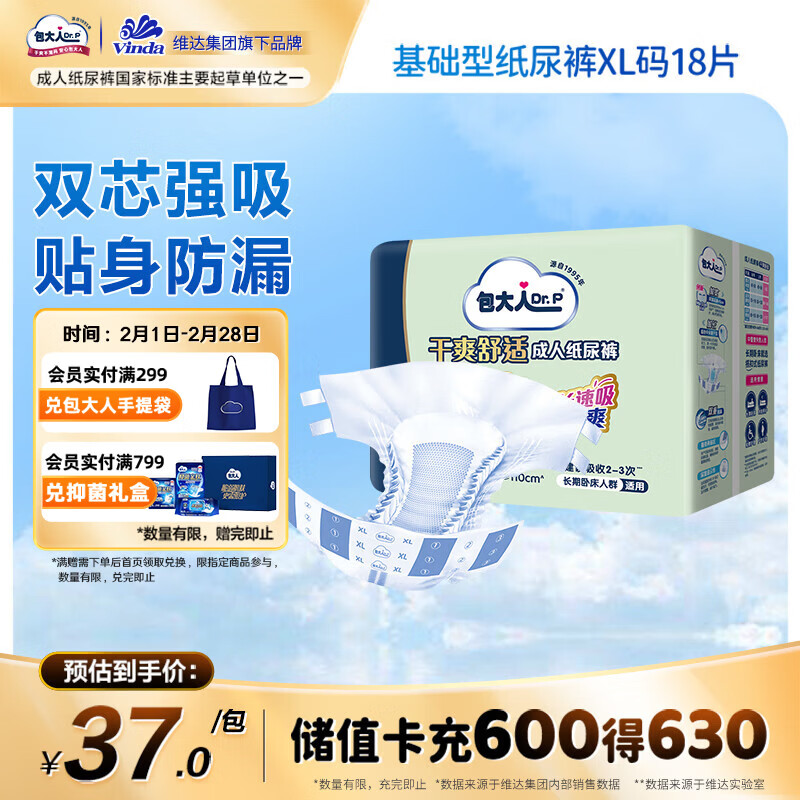 包大人(Dr.P)干爽舒适成人纸尿裤基础型XL18片(腰围:90-140cm)老年产妇尿不湿