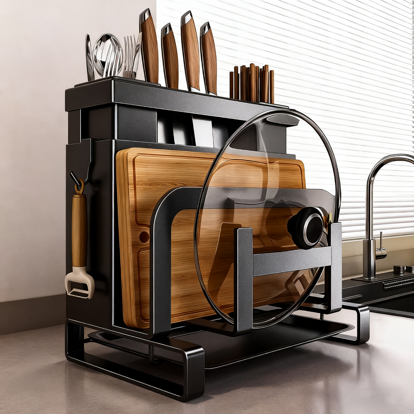 品喻(PINYU)厨房刀架置物架放菜刀筷子砧板锅盖菜板台面多功能刀具一体收纳架