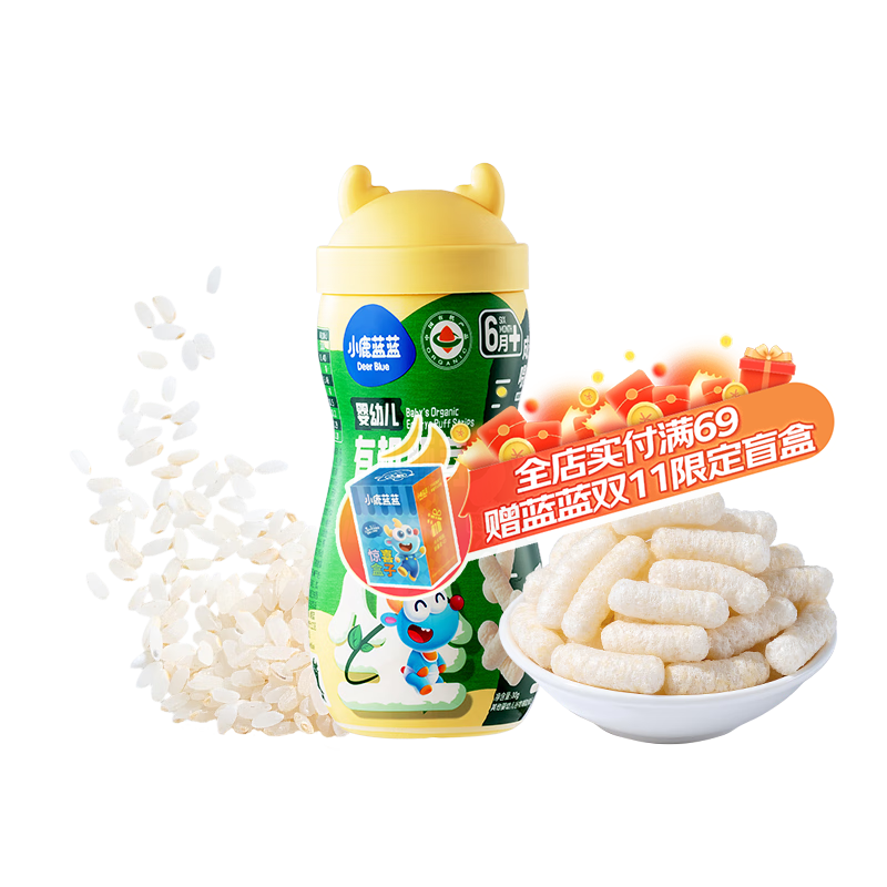小鹿蓝蓝婴儿泡芙儿童零食磨牙多造型泡芙球溶豆米饼搭档 【6月+原味 】有机胚芽泡芙条