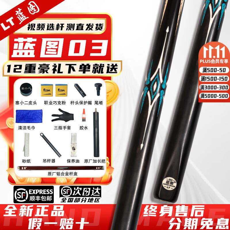 蓝图(LT)台球杆小头蓝图0102030405黑八斯诺克九球通杆免漆新款GM台球球杆 蓝图03【配原厂铝盒套装】