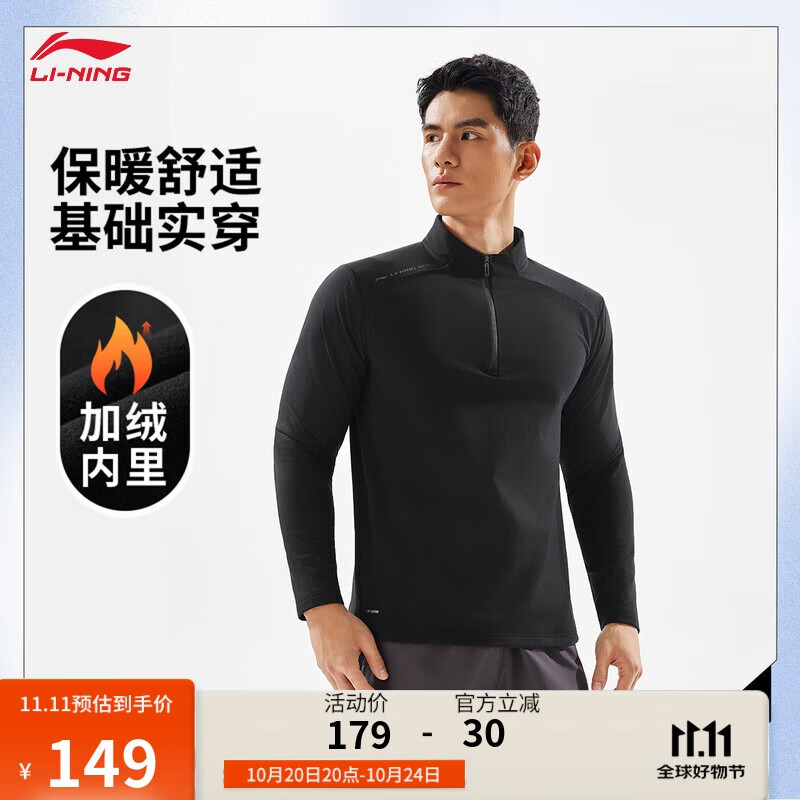 李宁长袖T恤男子2025新款健身系列亲肤舒适百搭加绒运动上衣ATLV365