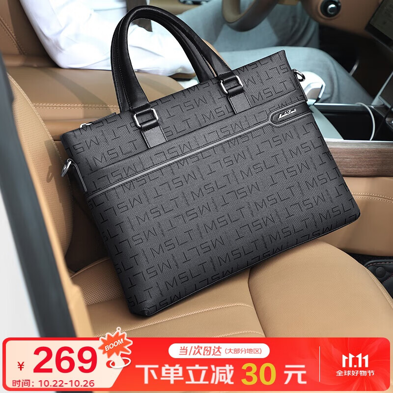 马莎兰缇(MashaLanti)男士出差商务公文包男包时尚大容量办公手提电脑包高级感生日礼物