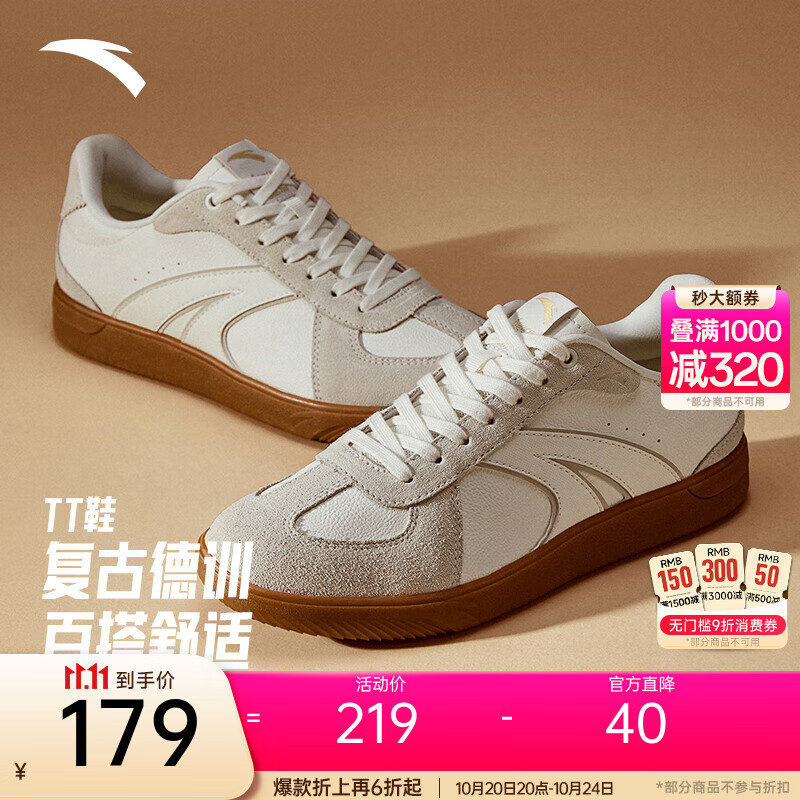 安踏TT鞋丨王一博同款德训鞋男女情侣款秋季休闲板鞋运动鞋休闲薄底鞋 【男款TT】象牙白-1 41 (建议拍大半码)