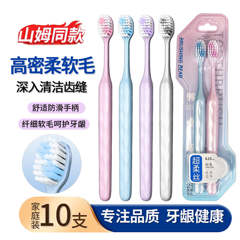 BRUSHING BEAR山姆同款牙刷软毛小头高密护龈青少年成人男女士家用家庭装10支