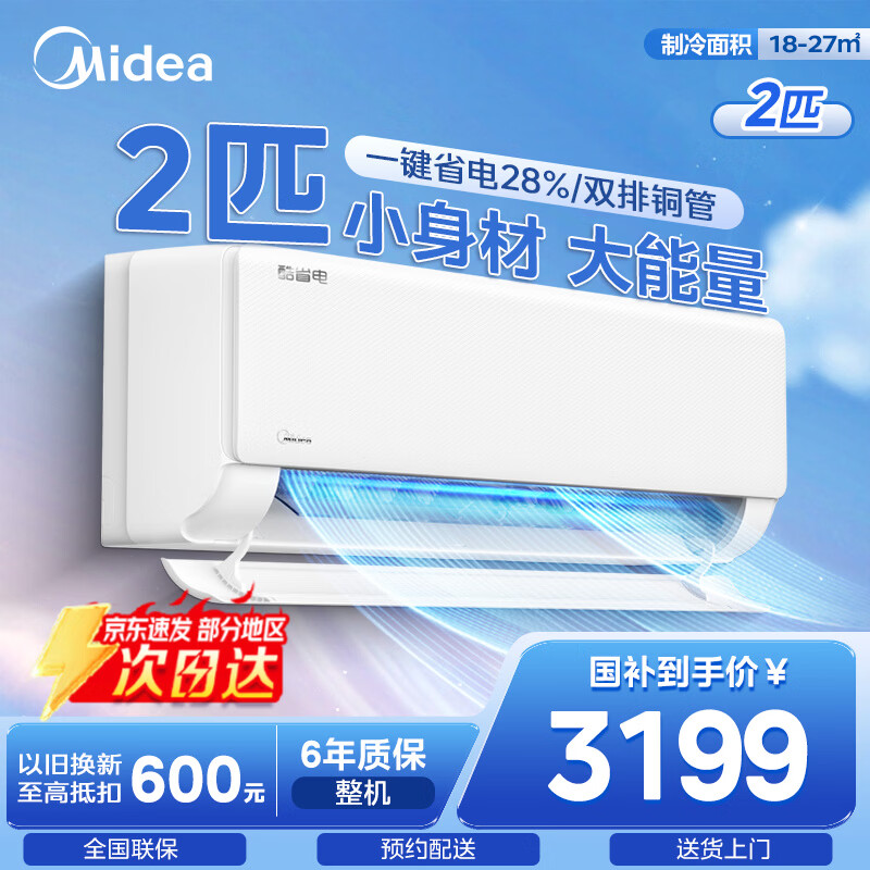 美的(Midea)酷省电二代pro 空调挂机1.5匹 新一级能效 全直流变频节能防直吹壁挂式 国家补贴 家电以旧换新 酷省电 2匹 省电28%