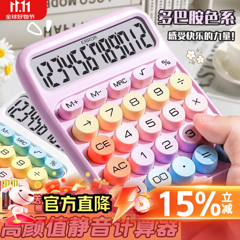 少年伴计算器多巴胺高颜值学生用计算机器财务会计小初中开学彩色可爱女生网红款儿童款 可爱粉