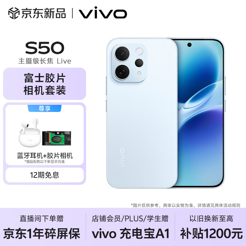 vivo S50 12GB+256GB 悠悠蓝 【富士胶片相机套装】主摄级长焦Live 高通第三代骁龙8s AI拍照手机