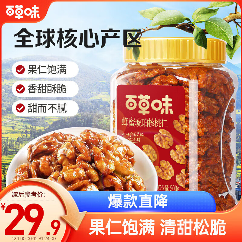 百草味蜂蜜琥珀核桃仁500g 罐装即食熟核桃仁坚果干果零食